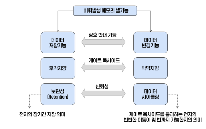 ▲ 데이터의 저장기능과 변경기능의 대치 @ 비휘발성 메모리 셀