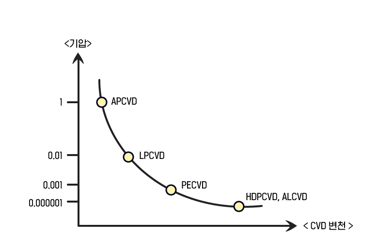 ▲ 압력을 기준으로 본 CVD